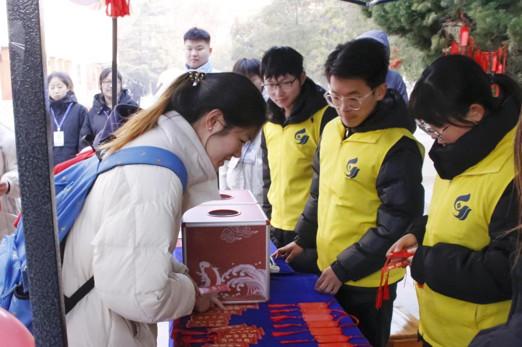 小小的福牌,承载着大大的梦想,铃声在悦动,梦想与希望在滋长。志愿者精心布置,进行福牌悬挂工作。写着“金榜题名”“一战成硕”“研途星光,不负你我”等祝福语的福牌,激励着考研学子以更加昂扬的斗志投入到考研复习中。考研学子纷纷上前领取自己意中的“红”运福牌,喜悦之情溢于言表。