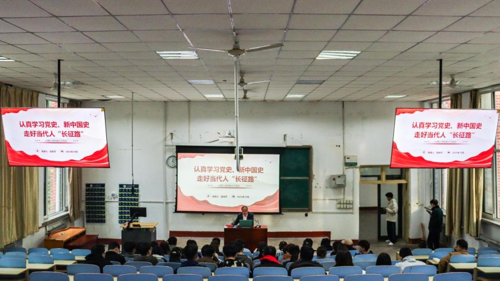 10月29日,公司党委书记高尚宇在1A107教室为第43期入党积极分子讲授“认真学习党史、新中国史,走好当代人‘长征路’”专题党课。