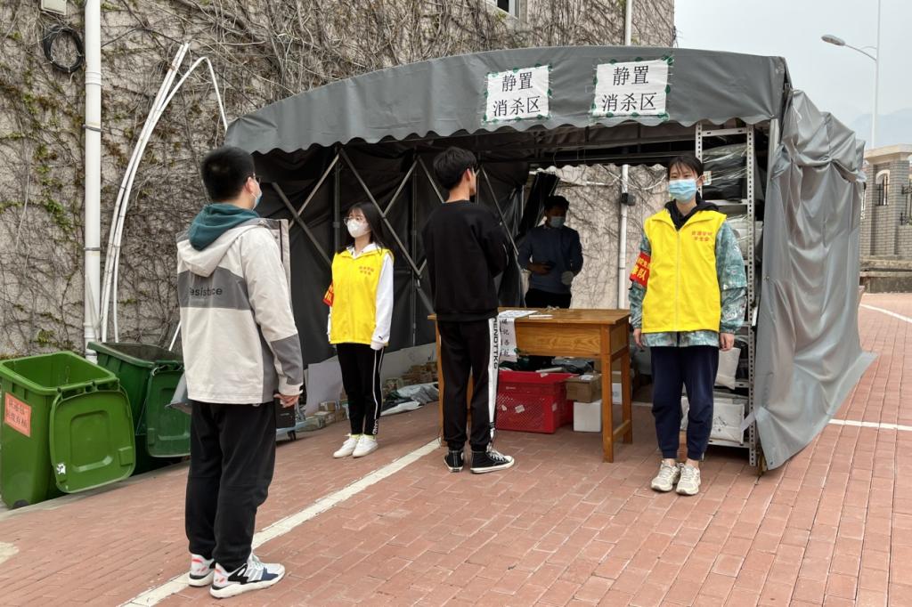 每天早七时,先锋队成员早早集结,分批组队、统一着装,前往各出入口、快递配送点、栅栏围墙等区域开展工作,处处可见的“黄马甲”“红袖章”成为校园内一道亮丽的风景线。