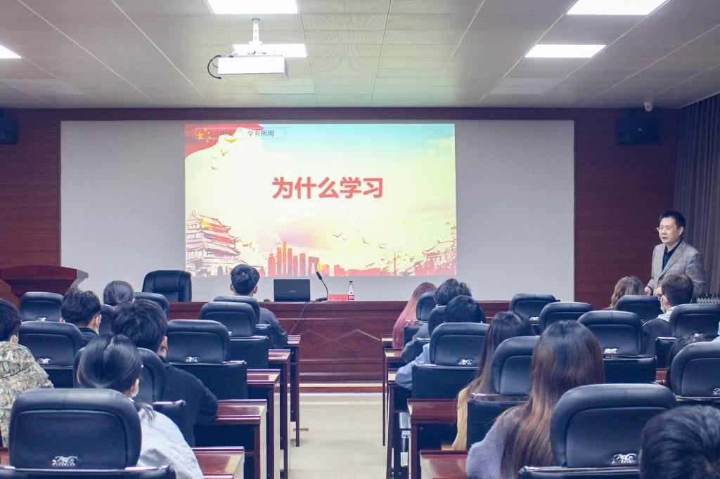 参训学员首先观看了短片《“画”说党史》,一道回顾了中国共产党从无到有、从弱到强、从九死一生到蓬勃兴旺的发展历程。随后,王清标带领大家深刻领会了习近平总书记在庆祝中国共产主义青年团成立100周年大会上的重要讲话精神,切实感悟了共青团不忘初心、牢记使命,走在青年前列,组织引导一代又一代青年坚定信念、紧跟党走的光辉历程。