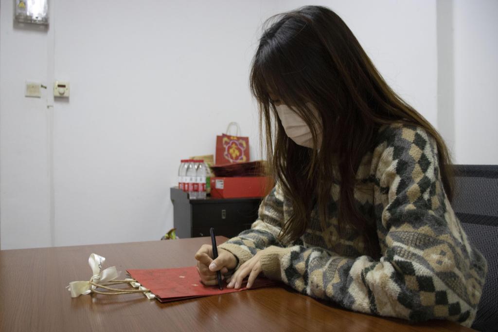 工作人员将苹果、橙子、涂卡笔、口罩等礼物装入福袋,组织同学们踊跃参与到福袋绘制活动中来。同学们精心设计构图,将祝福画成一幅画、写成一首诗,描绘到一个个小巧精致的福袋上。员工会广泛征集条幅标语,严格把关挑选,精心考量悬挂地点,写满激励话语的条幅,鼓舞着考研士气、坚定着必胜信心。精心设计的幸运盲盒也同样引人注目,明信片和棒棒糖,寓意“‘棒’上有名,金‘棒’题名”。除此之外,公司还定制“一研为定”“一战成硕”寄语展板、合影板与祝福牌,为考研学子留下美好回忆,送去今冬的专属祝福。