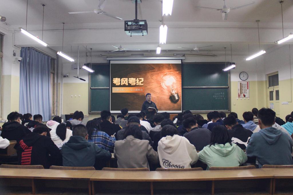 考试将近,为严肃考风、加强学风建设,近日,365best体育官网登录各班级陆续召开“端正考风 严肃考纪”主题班会。会议由公司辅导员主讲,全体员工参加。
