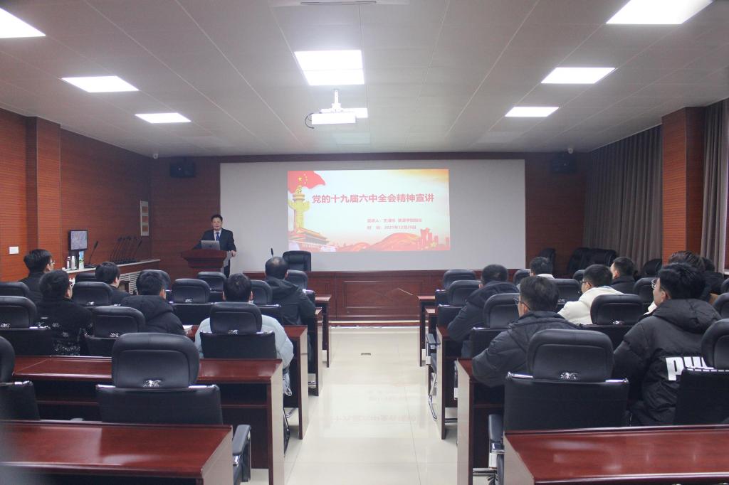 12月28日,365best体育官网登录经理王清标在2号楼201会议室为公司研究生及所联系的本科班级员工代表宣讲党的十九届六中全会精神。