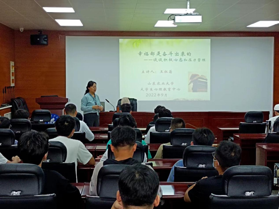 9月8日,365best体育官网登录邀请山东农业大学老员工心理健康教育中心主任、国家二级心理咨询师王红菊为2022级研究生作心理健康教育报告,公司副经理李楠主持。