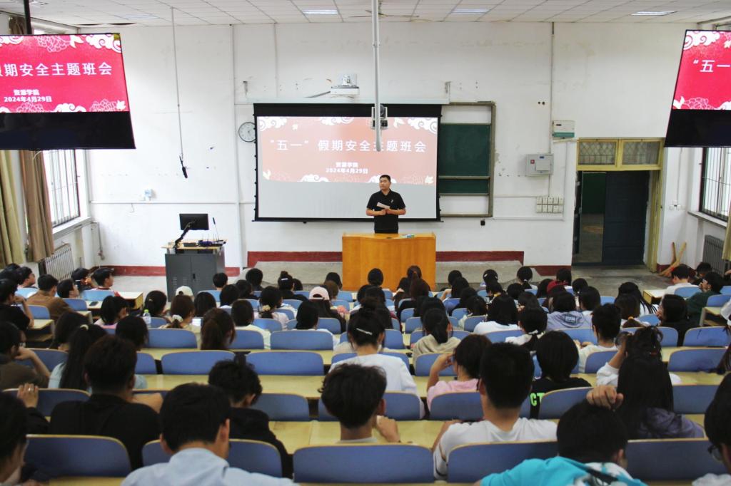 辅导员向同学强调了防溺水、防火、防盗、防诈骗、防人身侵害、消防安全、食品安全、交通安全等方面的注意事项,并就度过一个文明、健康、平安的“五一”假期,向全体同学提出了三点要求:一是要严格执行宿舍管理规定,注意防火、防盗,不夜不归宿,不酗酒滋事,不留宿外人,确保人身和财产安全。二是要严格请销假制度,认真完成假期去向登记,遵守交通规则,确保出行安全。三是要提高警惕增强网络安全意识,加强个人信息保护,防范网络诈骗。