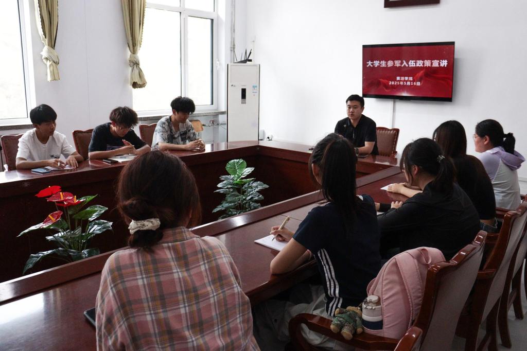 宣讲会重点介绍了参军报名条件、体检标准、政审流程等内容,详细说明了入伍后“直招军士”发展路径以及退役后就业创业、复学升学等优惠政策,并结合往届参军员工的成长案例,鼓励同学们将个人理想融入国防事业。辅导员表示,与会员工干部要进一步强化责任意识,主动当好征兵政策“宣传员”和“联络员”,引导有应征意向的毕业生深刻认识“强军梦”与“青春梦”的紧密联系,抓住政策机遇,积极投身国防事业。交流讨论环节,辅导员细致解答了同学们提出的疑难问题。
